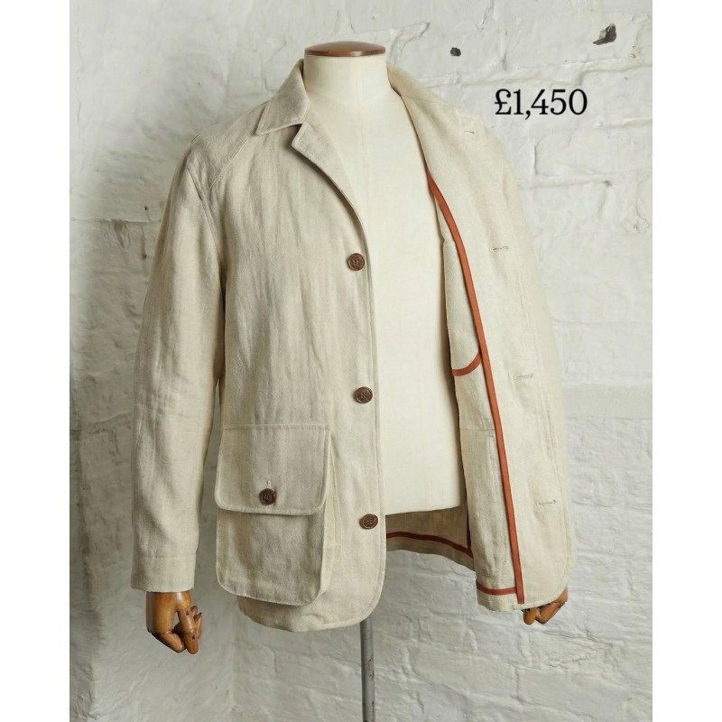 This washing process softens the fabric, enhances drape, and gives the jacket a lived-in feel from the outset — while retaining the strength and durability Solbiati linen is known for. It is a linen designed to wear well, travel well, and age beautifully.